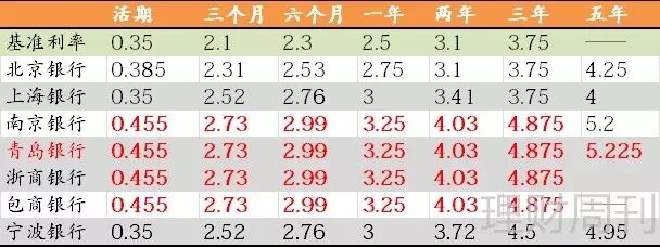 城商行里:青岛银行、南京银行、浙商银行、包商银行利率最高;