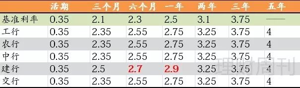 有点意外的是,建行这次没和其它四家银行保持步骤一致,六个月和一年期利率高出了不少。