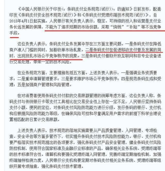 显然马云的这一举动是非常有效的,不仅仅让用户得到实际的福利,而且还成功的惊动了银行,前不久,针对马云线下红包活动,央行发布了一份文件《条码支付规范》,这份文件一发布就在网络上引起众议。在文件中,央行称“不能为了追求短期的市场份额,采取“烧钱”“补贴”等不正当竞争手段,似乎剑指支付宝。