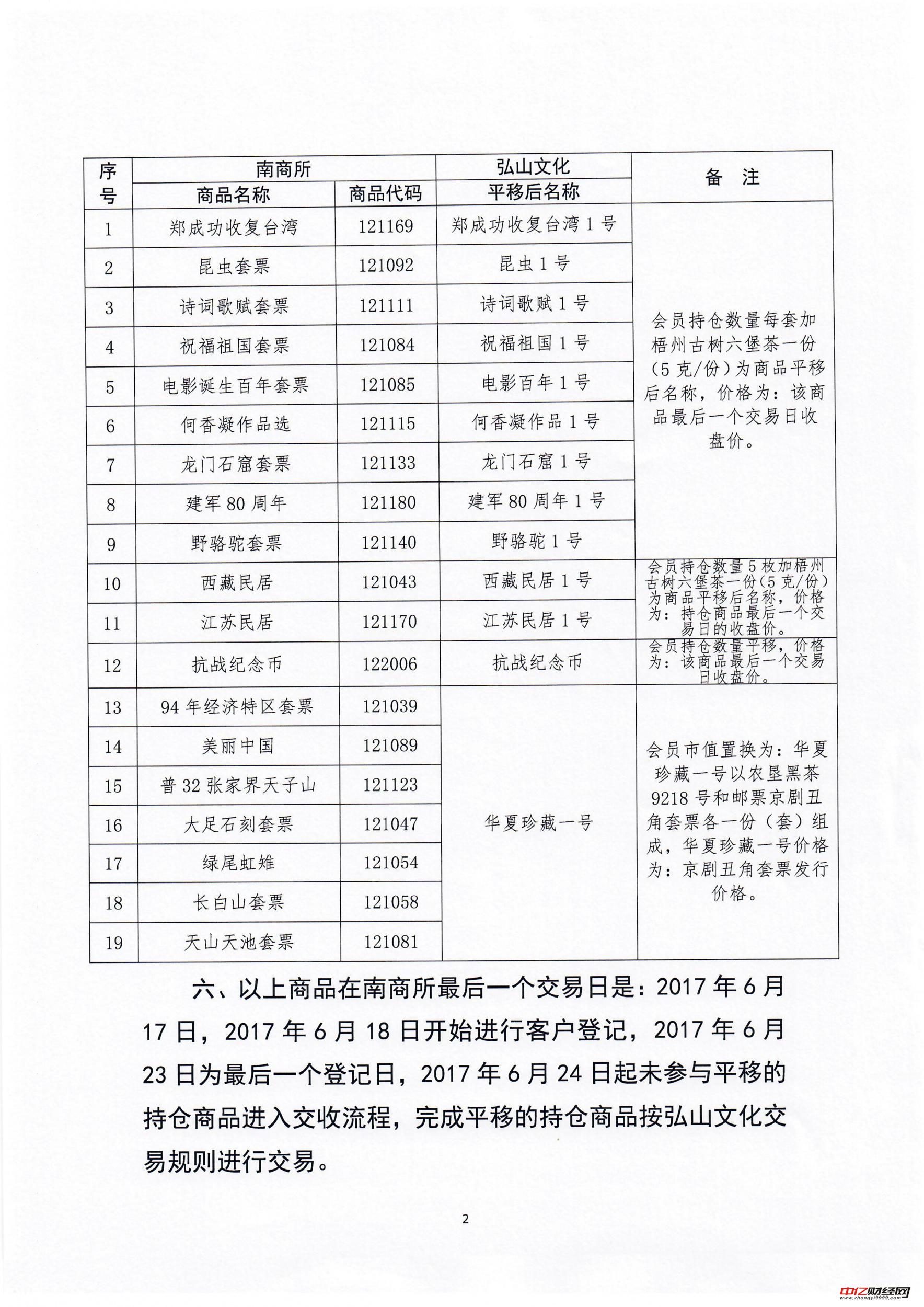 关于《郑成功收复台湾》等商品移至内蒙古弘山文化艺术品交易中心有限公司经营的公告