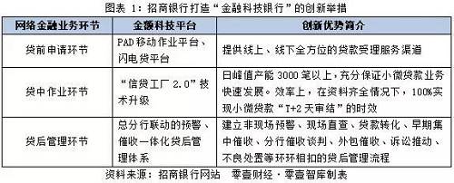 招商银行将在本次设立总行级的普惠金融服务中心之后,提出已将小微智能经营平台确定为全行重点Fintech项目,目前已经完成一期开发上线并将持续迭代优化。目前,招行为了使自身打造为“金融科技银行”,在发展网络金融业务的贷前、贷中和贷后各个环节,全面运用了金融科技手段。