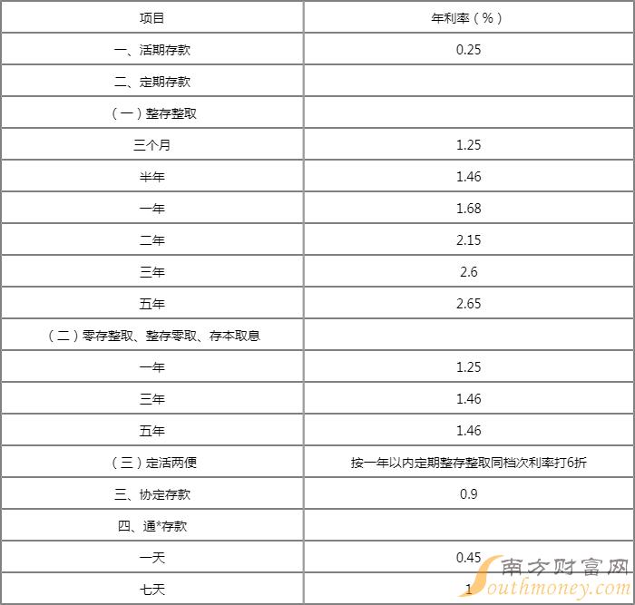 中国邮储银行存款利率